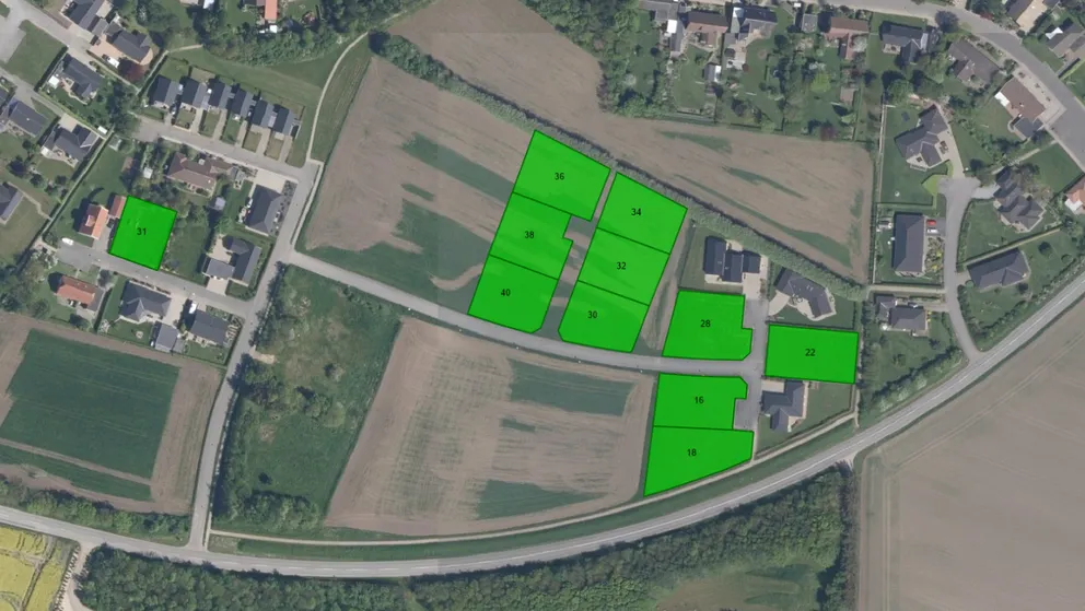 Ikke langt fra Midtpunktet ligger Valmuevej. Udstykningen har terræn op til åbne marken og villehus-områder. Grundene ligger let tilgængelig i forhold til hovedvejen.
