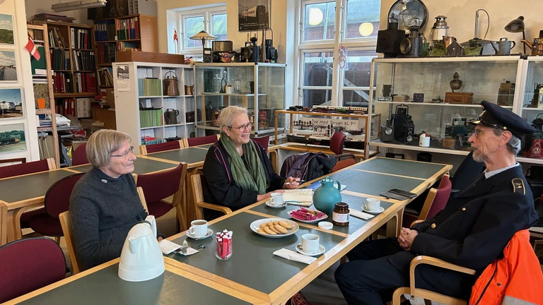 Fotokreditering: Isa Paludan, Lydlaboratoriet. På billedet ses Josefine Ottesen sammen med Kaj Rasmussen og Vibeke fra Struer Jernbanemuseum.