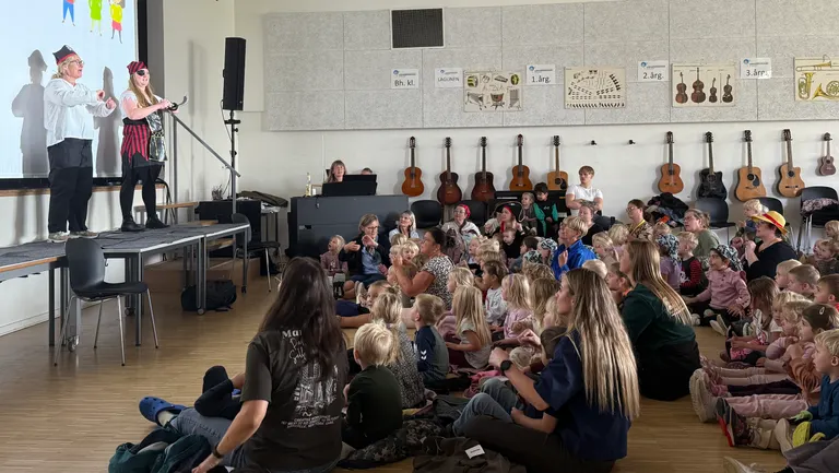 Multisalen var godt fyldt med barnevogne, smilende pædagoger og glade børn fra dagplejen til indskolingen, da Limfjordsskolen lagde scene til den fælles sangdag Små Synger Sammen.